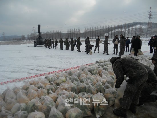 고양시는 강추위와 먹이부족으로 어려움을 격고 있는 야생동물들에게 옥수수, 밀, 콩, 채소류 등 7000kg을 준비하여 군 항공단의 군용헬기 1대를 지원 받아 고양시 관내 백두대간의 한북정맥 줄기인 개명산과 노고산 7부 능선에서 대대적으로 야생동물 먹이를 살포했다.
