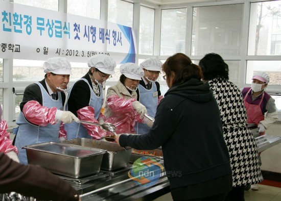 중학교 친환경 무상급식 첫날
