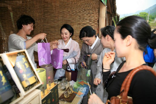 ▲ 하동 야생차문화축제 녹차 시장은 다양한 다원의 차를 맛본 후, 구입할 수 있어 믿음에 즐거움이 더한다. 축제 기간에는 시중가보다 훨씬 저렴한 가격에 고급 수제차를 판매한다.하동 야생차문화축제를 즐기는 가장 좋은 방법은 축제장 곳곳을 돌며 여러 다원의 차를 맛보고 차향에 흠뻑 취해보는 것이다.▲ 외국인이 녹차시장의 한 다원부스에서 차를 마시며 이야기를 나누고 있다.하동 야생차문화축제장에 마련된 녹차 시장은 차를 맛보며 편안하게 다담을 나눌 수 있는 공간으로 마련되었다.