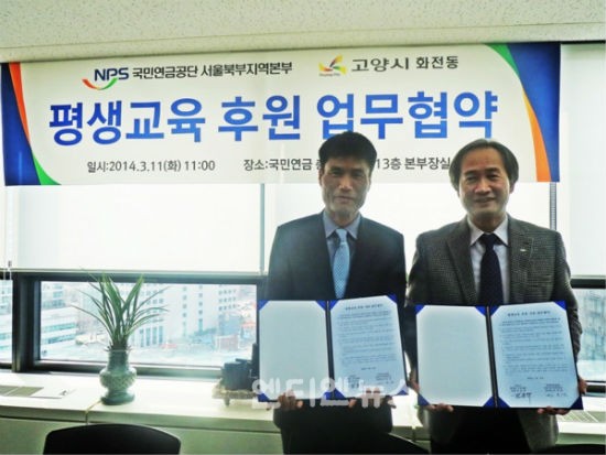 고양시 화전동주민센터(동장 김종백)와 국민연금공단 서울북부지역본부(본부장 이수민)는 지난 11일 국민연금공단 서울북부지역본부 본부장실에서 화전동 주민자치위원을 대상으로 ‘행복노후설계 아카데미’를 개설하기 위한 업무협약(MOU)을 체결했다.