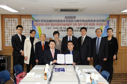 서울시의회 이정찬의원 (새정치민주연합, 양천2)은 14일 중국 강소성 염성시 경제개발구 한국 공업원 구빈옌청서기를 비롯한 관계자들을 초청 한중협회와 함께 양측 투자정보 및 기업협력에 대한 업무협약식을 가졌다.