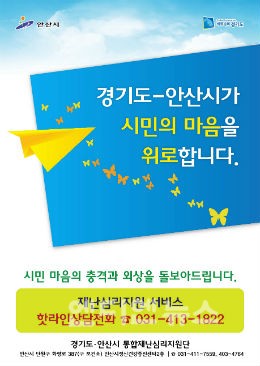 한편, 재난 심리지원 서비스를 받고자 할 경우에는 상담 전용 전화(☎413-1822) 또는 경기도·안산시 통합재난심리단(☎411-7559, 403-4764)과 시민상담소를 직접 방문을 해 상담을 받을 수 있다.