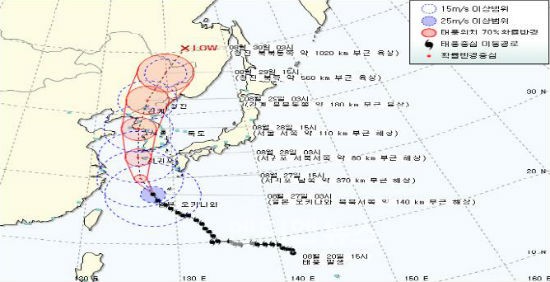 제15호태풍 볼라벤(BOLAVEN) 예상(‘12. 8. 27. 05:00 기준)