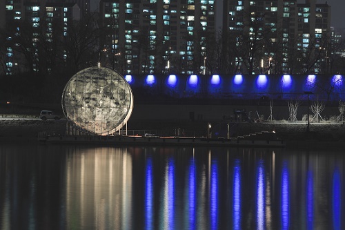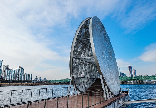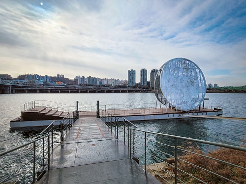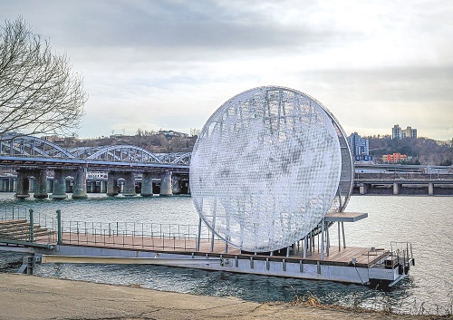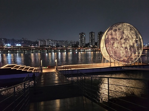 한강 노들섬에 방치돼 있던 선착장에 거대한 인공 달이 떴다. 보름달을 형상화한 지름 12m 원형 구조의 공공미술작품 ‘달빛노들’이다. ‘달빛노들’은 전망 데크, 휴식 공간, 소규모 무대로 쓰일 수 있는 문화 공간으로 조성되었다. 원형의 메탈 구조에 각기 다른 크기의 구멍 4만 5천 개를 뚫어 햇빛이 통과·반사되면서 일렁이는 한강 위에 달 형상을 비춘다. 밤에는 작품 안에 설치된 조명을 통해 은은한 빛이 흘러나와 마치 달무리가 진 것 같은 절경을 만들어낸다. 아름다운 한강 풍경과 환상적인 조화를 이루며 노들섬에 새로운 정취를 더할 것으로 기대된다.