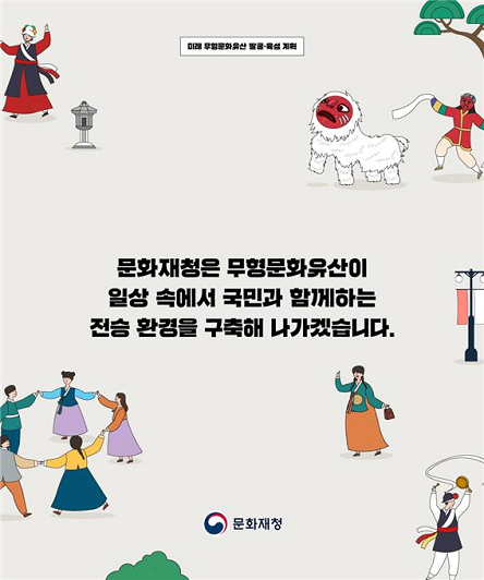 또한, 이와 별도로 국민이 공감·선호하는 무형문화유산을 발굴하기 위한 ‘미래 무형문화유산 발굴 국민공모’도 시행한다. 발굴·육성해야할 무형문화유산을 일반 국민이 직접 추천하는 방식으로, 전통지식·기술·예능 등 전 종목에서 공모를 받을 것이다.