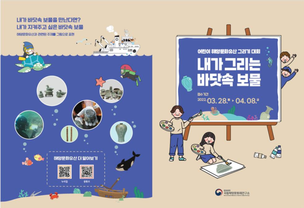 문화재청 국립해양문화재연구소(소장 김연수)는 오는 28일부터 4월 8일까지 전국의 유치원생과 초등학생을 대상으로 <어린이 해양문화유산 그림 공모전 : 내가 그리는 바닷속 보물>을 개최한다.