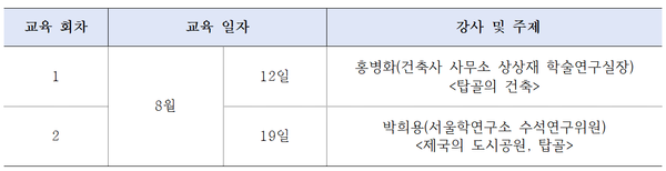 특별전과 연계한 교육 프로그램과 이벤트도 준비했다. 교육 프로그램 1회차는 8월 12일, 2회차는 19일 오후 2시 공평도시유적전시관 교육실에서 진행할 예정이다. 이번 교육 프로그램을 통해 탑골공원이 도시공원으로서 의미를 되새길 수 있는 시간이 될 것이다. 교육신청은 참가 접수는 오는 7월 26일부터 8월 8일까지 서울시 공공예약서비스(yeyak.seoul.go.kr)를 통해 신청하면 된다. 참가자 발표는 8월 9일이다(예정).