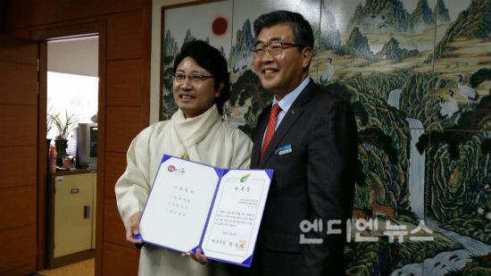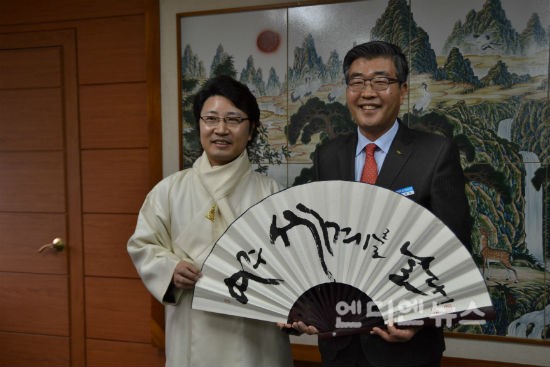 위촉장을 받은 한한국 작가는 본인이 직접 제작한 대형 평화부채를 여주시장에게 전달하면서 “여주에서 세계평화의 바람, 한글의 바람이 불기를 간절히 희망한다”고 말했다.