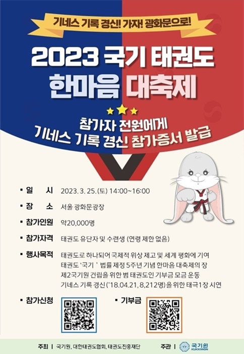 국기원측은 오는 3월25일 토요일 오후 2~4시 광화문 일대에서 펼쳐질 예정이다.