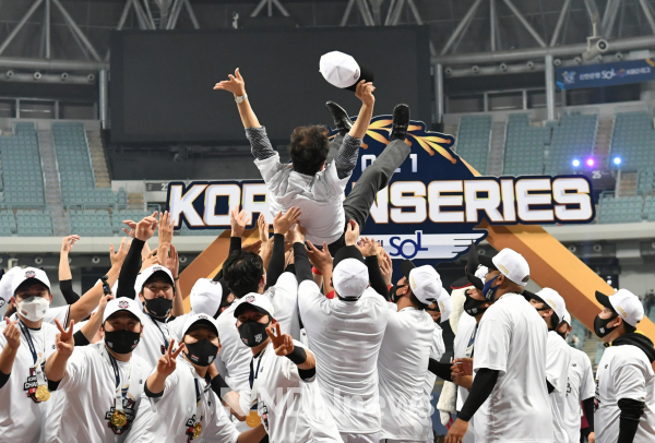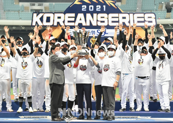 지난 10월 31일, 35년 만에 역대 두 번째로 열린 타이브레이크(순위 결정전)에서 삼성 라이온즈에 승리하며 ‘1군 진입 후 최단기간(7년) 정규시즌 우승’이라는 기록을 세운 kt 위즈는 이날 한국시리즈에서 승리하며 최단기간 통합 우승이라는 영예를 안았다.