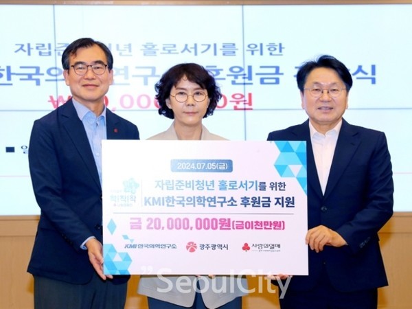 (재)KMI한국의학연구소가 자립준비청년을 위해 후원금 2000만원을 광주시에 전달했다.