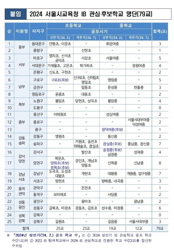 2024 하반기, 서울시교육청 IB 관심학교 35교 추가 운영