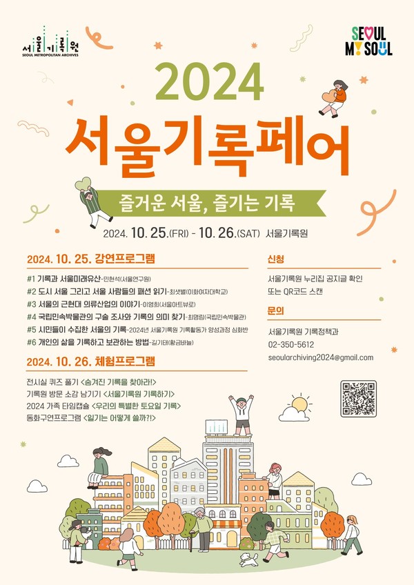[서울시티=선정진 기자] 서울기록원(원장: 고경희)은 서울을 기록하고 기억하는 시민과 함께하는 기록문화 행사 <2024 서울기록페어: 즐거운 서울, 즐기는 기록>을 10월 25일(금)~10월 26일(토) 이틀간 진행한다.