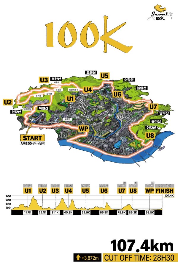 [서울시티=선정진 기자] 서울의 아름다운 자연과 도심 곳곳을 새로운 방법으로 달리는 대회가 찾아온다. 인왕산과 북악산 등 서울 명산뿐만 아니라 한강과 청계천까지 아우르며 달리는 ‘서울 국제 울트라 트레일러닝 대회(이하 ‘서울100K’)’가 10월 19일(토)부터 20일(일)까지 1박 2일간 열린다.