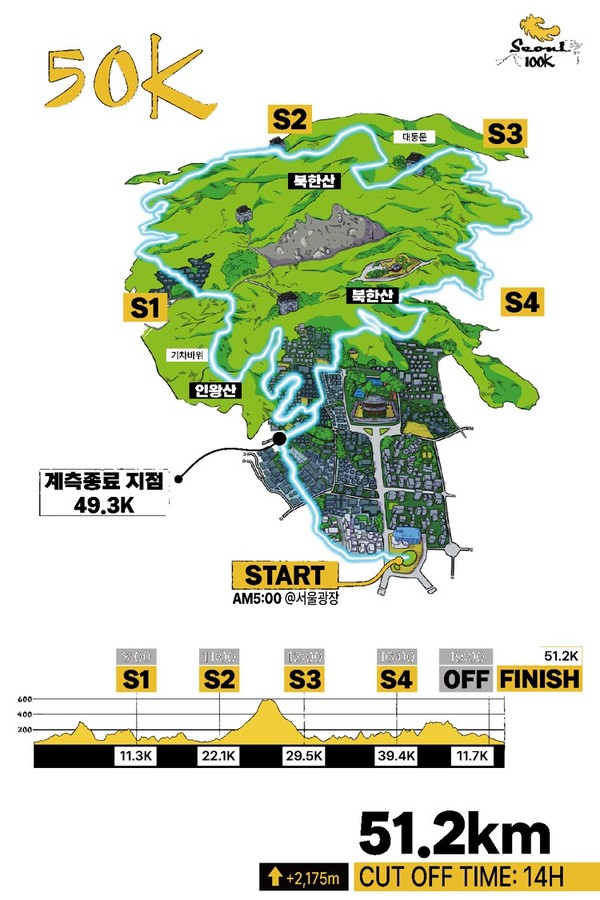 - 50km : 서울광장~인왕산자락길~북한산 둘레길~북악산~인왕산자락길~서울광장