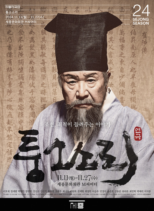 [서울시티=신환철 기자] 세종문화회관(사장 안호상)은 서울시극단(단장 고선웅)의 2024년을 장식하는 피날레 작품 <퉁소소리>를 11월 11일부터 27일까지 세종문화회관 M씨어터에서 선보인다. <퉁소소리>는 조선 중기 문인 조위한의 고소설 ‘최척전’이 원작으로 고선웅 서울시극단장이 직접 각색하고 연출을 맡는다.