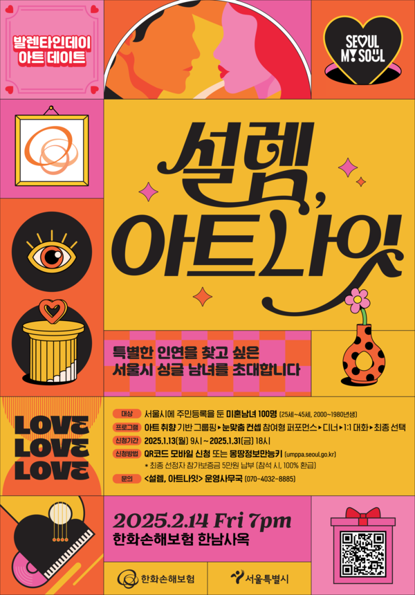 서울시는 한화손해보험(주)과 발렌타인데이인 2월 14일(금) 저녁 7시 두 번째 미혼남녀 만남행사인 ‘설렘, 아트나잇’을 개최한다고 밝혔다.