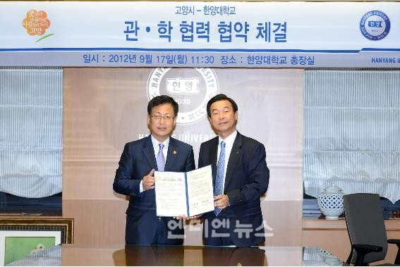 고양시에 따르면 지난 17일 한양대학교 총장실에서 최성 고양시장과 임덕호 한양대학교 총장을 비롯해 양 기관 관계자 15여명이 참석한 가운데 관·학 협약 체결식을 가졌다.