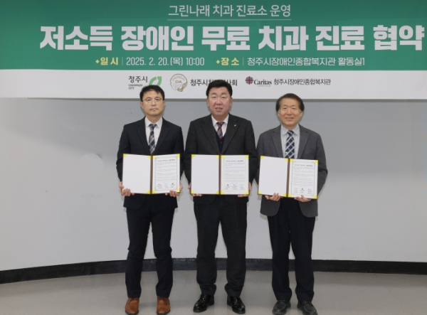 이번 협약을 통해 청주시는 진료 장소를 제공하고 치과의사회는 무료 진료, 장애인종합복지관은 홍보 등으로 사업 추진에 협력하기로 했다.
