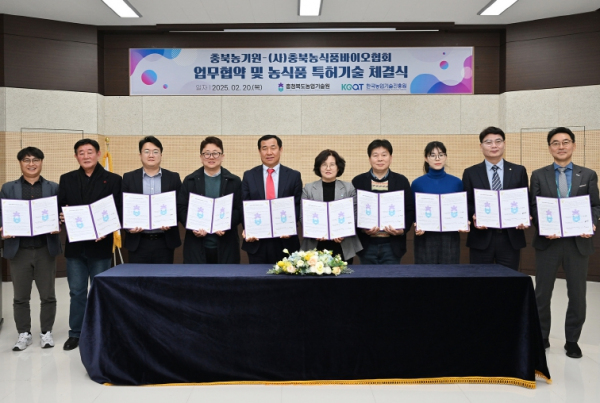 [서울시티 김청월 기자] 충북농업기술원은 20일 (사)충북농식품바이오협회(회장 정준영)와 충북 내 농식품 및 바이오 관련 기업과의 긴밀한 상호협력을 위한 업무협약과, 농식품 특허 기술 5건을 8개 업체에 이전하는 통상실시 체결식을 했다고 밝혔다.