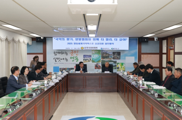 [서울시티 김청월 기자] 영동세계국악엑스포조직위원회는 2월 28일, 3월 5일 양일간에 걸쳐 영동군청 상황실에서 한국양봉협회(회장 박근호), 전국한우협회(회장 민경천)와 영동세계국악엑스포의 성공개최를 위해 업무협약을 체결했다고 밝혔다.