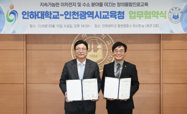 [서울시티 선정진 기자] 인천광역시교육청은 12일 ‘이차전지 및 수소 분야 창의융합진로교육’을 위해 인하대학교와 업무협약을 체결하고 미래 핵심 인재 양성에 나선다.