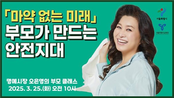 [서울시티 선정진 기자] 서울시는 마약으로부터 아이들을 지키기 위해 오은영 서울시 명예시장과 함께 학부모들의 고민을 해결해주는 ‘마약 없는 미래, 부모가 만드는 안전지대’ 온라인 특강을 진행한다.