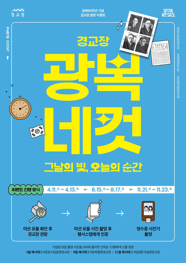 최병구 서울역사박물관장은 “광복80주년을 기념하는 이번 이벤트를 통해 독립의 험난한 과정을 이해하고, 그간 잘 알려지지 않았던 독립 관련 기념일을 인식하는 계기가 되길 바란다.”고 전했다.