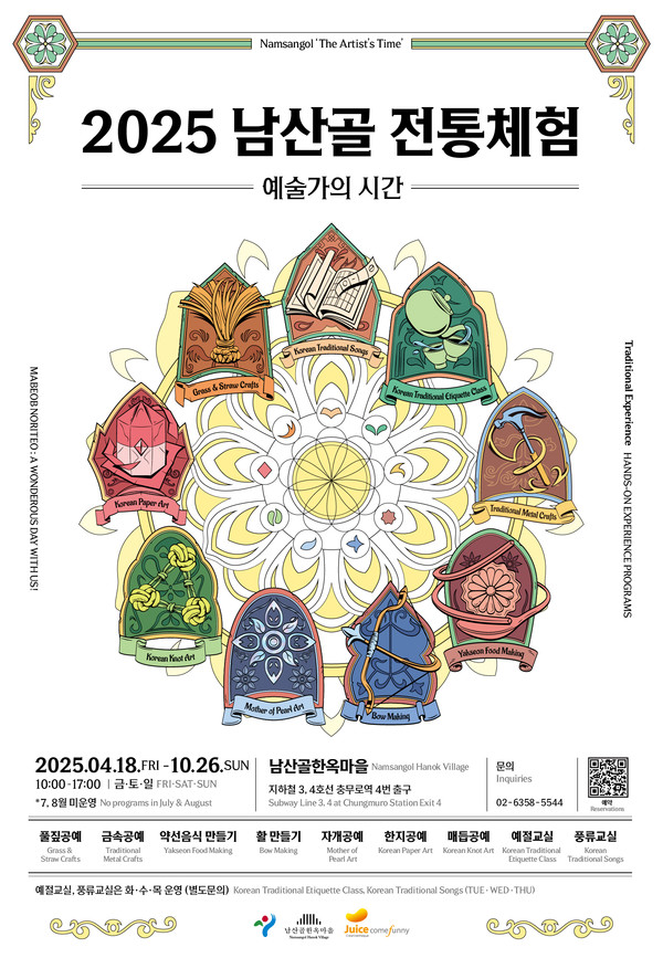 이번 프로그램은 한옥의 운치 속에서 다양한 전통문화를 직접 체험할 수 있는 기회로 4.11.(금) 14시부터 남산골한옥마을 공식 누리집을 통해 사전 예매할 수 있다.