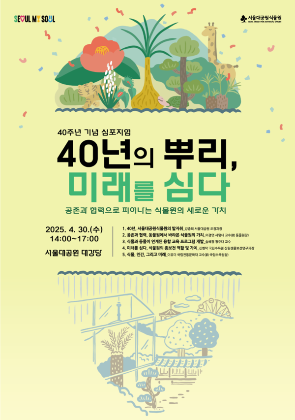 [서울시티 선정진 기자] 서울대공원은 식물원 개원 40주년을 맞아 오는 4월 30일(수) 오후 2시, 서울대공원 대강당에서 ‘식물원 40주년 기념 심포지엄’을 개최한다.