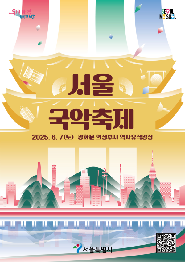 [서울시티 선정진 기자] 서울시가 오는 6월 7일(토) 10시부터 21시까지 광화문 앞 의정부지 역사유적광장에서 <2025 제7회 서울국악축제>를 개최한다. 특히 올해는 매년 6월 5일을 ‘국악의 날’로 지정한 첫 해로, 축제의 상징성과 중요성이 더욱 크다.