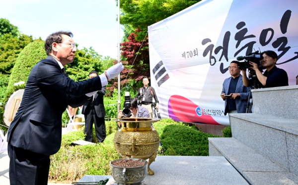 [서울시티 이상준 기자] 인천광역시는 6월 6일 제70회 현충일을 맞아 미추홀구 수봉공원에 위치한 현충탑에서 추념식을 개최했다고 밝혔다.