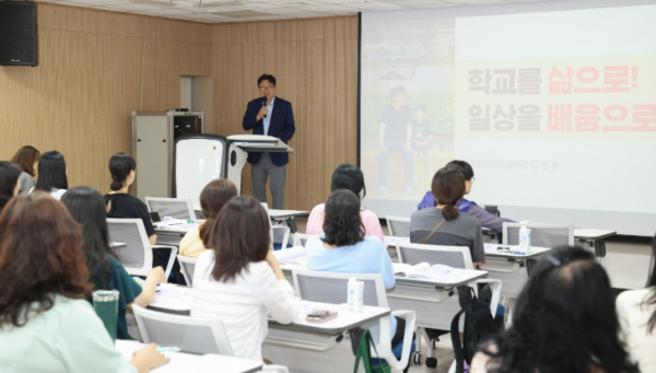 도성훈 교육감은 지난 17일 ‘학교를 삶으로, 일상을 배움으로’를 주제로 강의에 참여해 “미래교육은 삶의 힘을 키우는 방향으로 나아가야 한다”며, “읽걷쓰 실천을 통해 학생의 역량이 시민의 문화역량으로 확장되고, 품격 있는 교육 도시로 성장하길 기대한다”고 말했다.