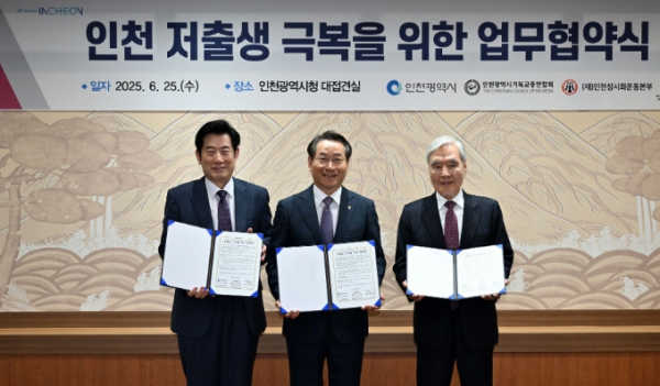 [서울시티 이상준 기자] 인천광역시는 6월 25일 인천시청에서 인천기독교총연합회, (재)인천성시화운동본부와 함께 저출생 극복을 위한 업무협약을 체결했다고 밝혔다.