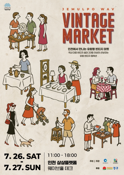 [서울시티 김청월 기자] 인천광역시와 인천관광공사는 7월 26~27일 상상플랫폼 웨이브홀(실내)에서 인천 대표 로컬 브랜드와 국내 대표 빈티지 셀러 총 90팀이 참여하는‘2025년 제2회 제물포 웨이브 마켓’을 개최한다고 밝혔다.