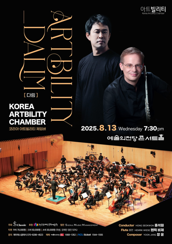 코리아 아트빌리티 체임버 강미사 음악감독은 “창단 이후 처음으로 예술의전당 콘서트홀 무대에 오르게 되어 큰 기대와 설렘으로 준비하고 있다”며, “장애와 비장애 연주자들이 함께 무대를 만들어온 지난 13년의 여정이 이번 공연을 통해 더욱 깊고 넓게 확장되기를 바란다”고 밝혔다.