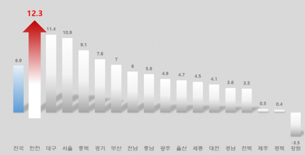 통계청이 7월에 발표한 인구동향에 따르면, 올해 1월부터 5월까지 인천시의 출생아 수는 총 6,868명으로 전년 동기 대비 1,278명이 증가해 12.3%의 높은 성장률을 기록했다. 이는 전국 평균 6.9%를 크게 상회하는 수치이며, 충북(11.4%)과 대구(10.9%)가 그 뒤를 이었다.
