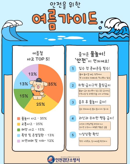 [서울시티 김청월 기자] 인천검단소방서는 본격적인 여름 휴가철을 맞아 발생할 수 있는 물놀이 안전사고 예방을 위해 안전수칙을 홍보한다고 24일 밝혔다.