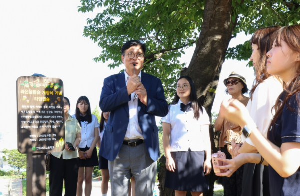 마지막으로 도 교육감은 “아름다운 학교숲 조성을 위해 헌신한 교장선생님과 교직원, 학부모, 동문, 학생 모두에게 감사드린다”며 “학생들이 이 공간에서 건강하게 성장하길 바란다”고 전했다.