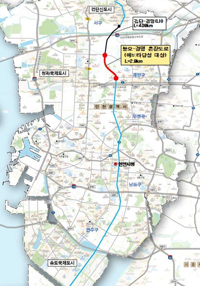 [서울시티 김청월 기자] 인천광역시는 인천 북부의 검단지역과 남부의 송도지역을 연결하는 신규 남북 간선축의 핵심 도로인 ‘봉오–경명 혼잡도로 건설사업’이 제2차 예비타당성조사 대상 사업으로 선정됐다고 20일 밝혔다.