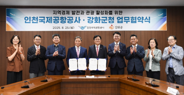 [서울시티 김청월 기자] 인천국제공항공사는 지난 25일 공사 회의실에서 강화군과 ‘공항 인근지역 관광 활성화 및 지역경제 발전 협력을 위한 업무협약’을 체결했다고 26일 밝혔다.