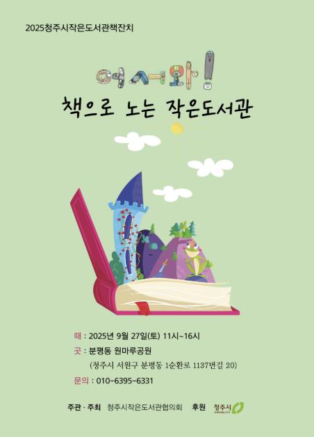[서울시티 김청월 기자] 청주시작은도서관협의회가 주관하고 청주시가 후원하는 2025 청주시 작은도서관 책잔치가 오는 27일 오전 11시부터 오후 4시까지 분평동 원마루공원에서 열린다.