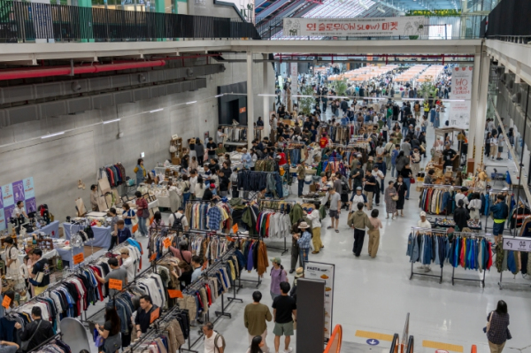라운지 공간에서는 국내 최대 규모의 빈티지 마켓인‘오 ! 슬로우 마켓’이 열려 총 80개 팀이 희소성 있는 아이템과 수공예품을 선보였다. MZ세대를 중심으로 셀러와 소비자가 직접 소통하며 빈티지 시장의 저변을 확대하고 새로운 트렌드를 공유하는 장이 됐다.