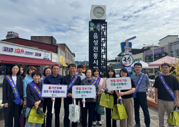 이번 장보기 행사는 음성전통시장에서 진행됐으며, 충북도 보건복지국 소속 직원 20여명이 참여해 전통시장에 활력을 불어넣기 위해 추석 제수용품과 성수품 등을 온누리 상품권으로 구매하고, 경기침체와 물가상승에 따른 지역 상인들의 어려움을 청취하며 소통의 시간을 가졌다.