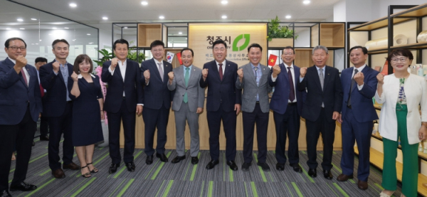 참석자들은 청주시 해외통상사무소 개소를 축하하며 두 도시 간 경제교류 확대 방안에 대해 심도 있는 논의를 나눴다.