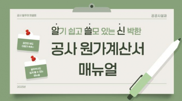 시 관계자는 “이번 매뉴얼은 복잡한 원가계산서를 보다 쉽게 이해하고 현장에 바로 적용할 수 있도록 돕는 실무형 행정 지원서”라며 “발주부서와 현장 간의 소통을 강화하고 행정 효율성을 높이는 계기가 될 것”이라고 말했다.