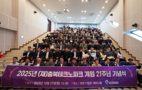 [서울시티 김청월 기자] (재)충북테크노파크(원장 박순기, 이하 충북TP)는 10월 27일 개원 21주년을 맞아 충북TP 선도기업관 세미나실에서 기념식을 개최했다.