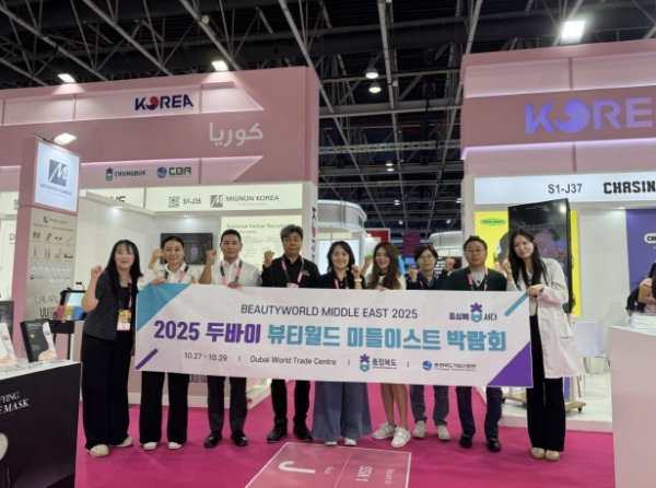 [서울시티 김청월 기자] 충북도와 충청북도기업진흥원은 도내 화장품 기업의 해외시장 진출 확대를 위해 지난 10월 27일부터 29일까지 ‘2025 두바이 뷰티월드 박람회(2025 Beautyworld Middle East)’에 참가했다고 31일 밝혔다.