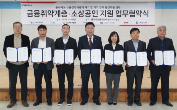 한국자산관리공사 충북지역본부 주최로 열린 이번 협약에는 청주시, 신용회복위원회 청주지부, 서민금융진흥원 대전·충청지역본부, 충청북도 소상공인연합회, 소상공인시장진흥공단 충북지역본부, 전국상인연합회 충북지회 등 7개 기관이 참여해 지역 단위 협력체계를 공식화했다.