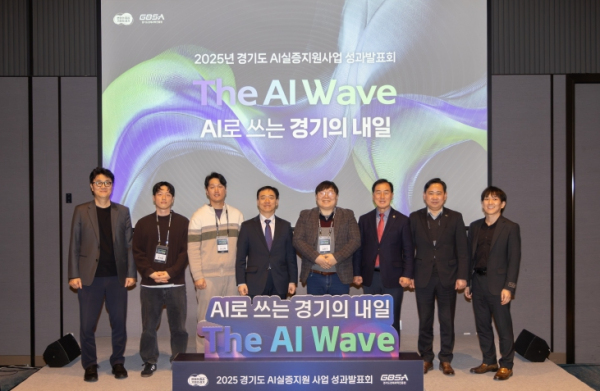 경기도와 경기도경제과학진흥원은 14일 판교에서 ‘The AI Wave – AI로 쓰는 경기의 내일’을 주제로 ‘2025 경기도 AI 실증지원사업 성과발표회’를 열었다. 행사에는 실증사업 참여기업 26곳을 비롯해 벤처캐피탈(VC), 액셀러레이터(AC), 도의회 관계자 등 100여 명이 참석해 성과를 공유하고 향후 인공지능 산업 생태계 강화 방향을 논의했다.